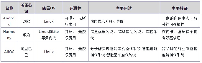 - Android 憑借其豐富的應(yīng)用生態(tài)和用戶體驗(yàn)優(yōu)勢(shì),在車載導(dǎo)航、多媒體播放等領(lǐng)域取得顯著應(yīng)用,尤其在與移動(dòng)設(shè)備的無縫互聯(lián)和用戶友好界面上表現(xiàn)突出。