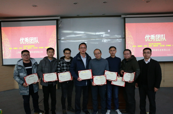 優(yōu)秀團(tuán)隊(duì)汽車電子研發(fā)團(tuán)隊(duì)(從左到右王紅波、黃亮、魏慶祥、曾佳、俞鑫東、張海雄、紀(jì)柯、周總(頒獎(jiǎng)人員))