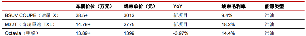 表4:汽車整車制造商對應主要線束供應商
