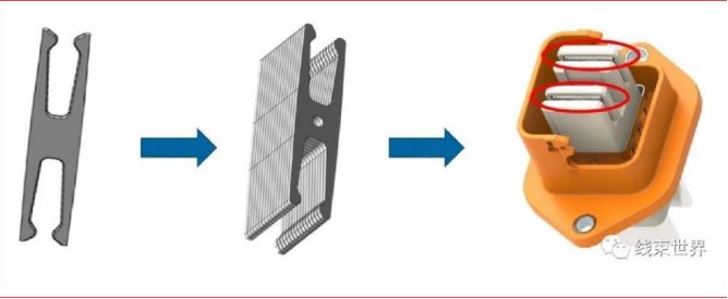 圖13:多片疊加的刀叉型端子結構示意圖