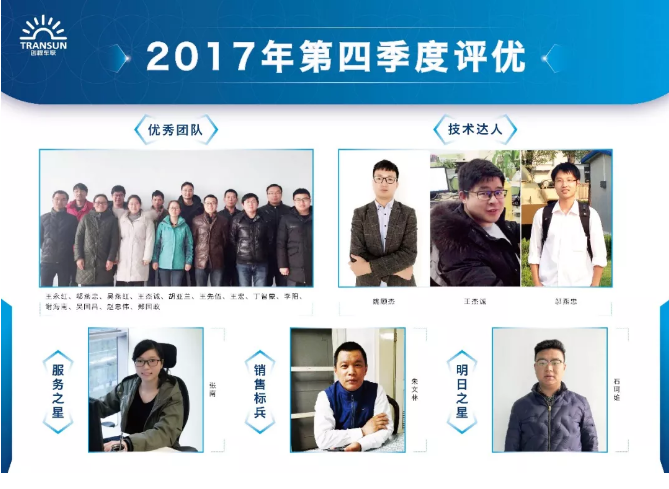 1月16號(hào),第四季度優(yōu)秀員工評(píng)選活動(dòng)已圓滿落下帷幕。經(jīng)過(guò)篩選,一批優(yōu)秀員工登上了光榮榜:優(yōu)秀團(tuán)隊(duì)車聯(lián)網(wǎng)研發(fā)部、技術(shù)達(dá)人姚顧杰、王杰誠(chéng)、鄔燕忠、服務(wù)之星張南、銷售標(biāo)兵朱文林、明日之星石珂維,在此,我們一睹他們的風(fēng)采。